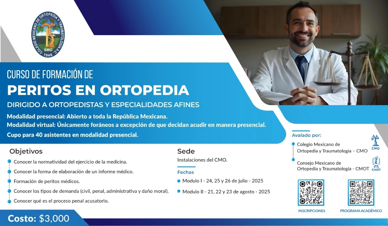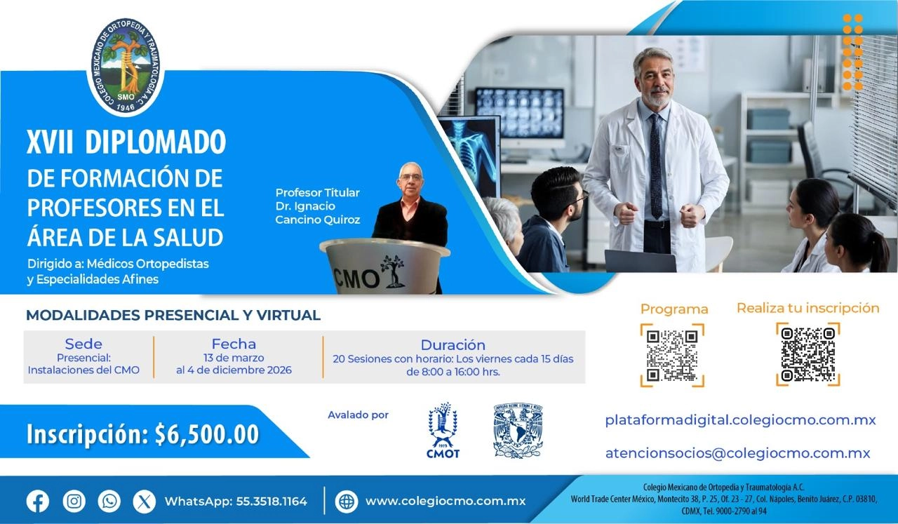 "El CMO promueve los valores de unión, fraternidad y enseñanza, en el contexto de la educación médica continua, brindando un firme respaldo al desarrollo de la Ortopedia a nivel nacional e internacional."